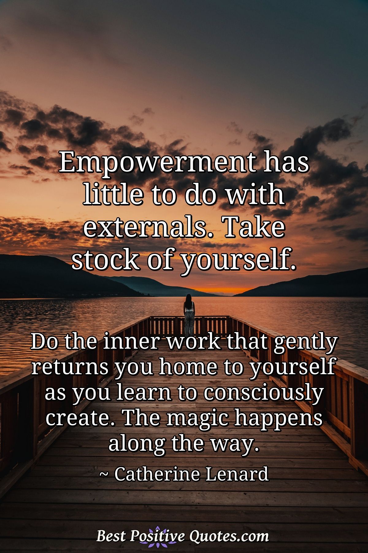 Empowerment has little to do with externals. Take stock of yourself. Do the inner work that gently returns you home to yourself as you learn to consciously create. The magic happens along the way.